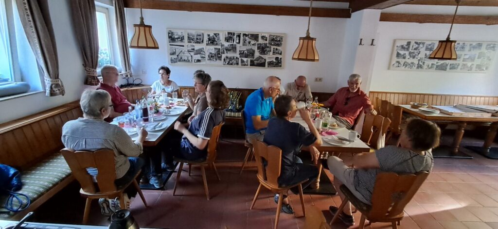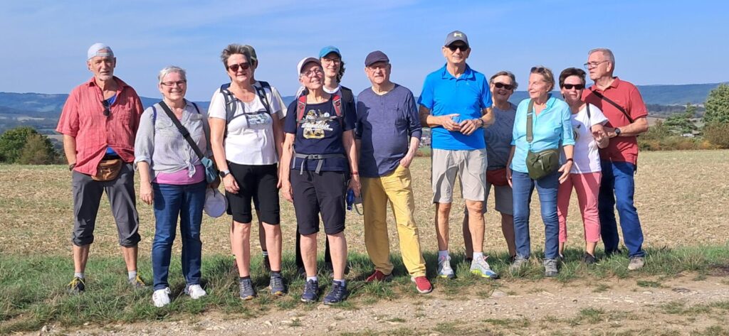 Sportliche Hospizbegleiter genossen einen rundum gelungenen Ausflug, der bei freundlichstem Sonnenschein von allem etwas bot: Bewegung in der Natur bei einer von Rita Lörzel geführten Wanderung rund um Oberwaldbehrungen, Innehalten beim jüdischen Friedhof im Wald, spontanes gemeinsames Singen in der evangelischen Kirche des Ortes und am Ende einen gemeinsamen Ausklang im Feuerwehrhaus. Da sich viele Teilnehmende länger nicht gesehen hatten, ergaben sich zahlreiche anregende Gespräche, deren Nachhall über den Tag hinausreichen werden.